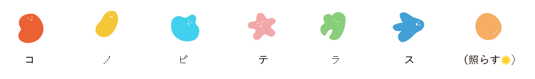コノビテラスのカタカナ+ ◯ (照らす)でできています。