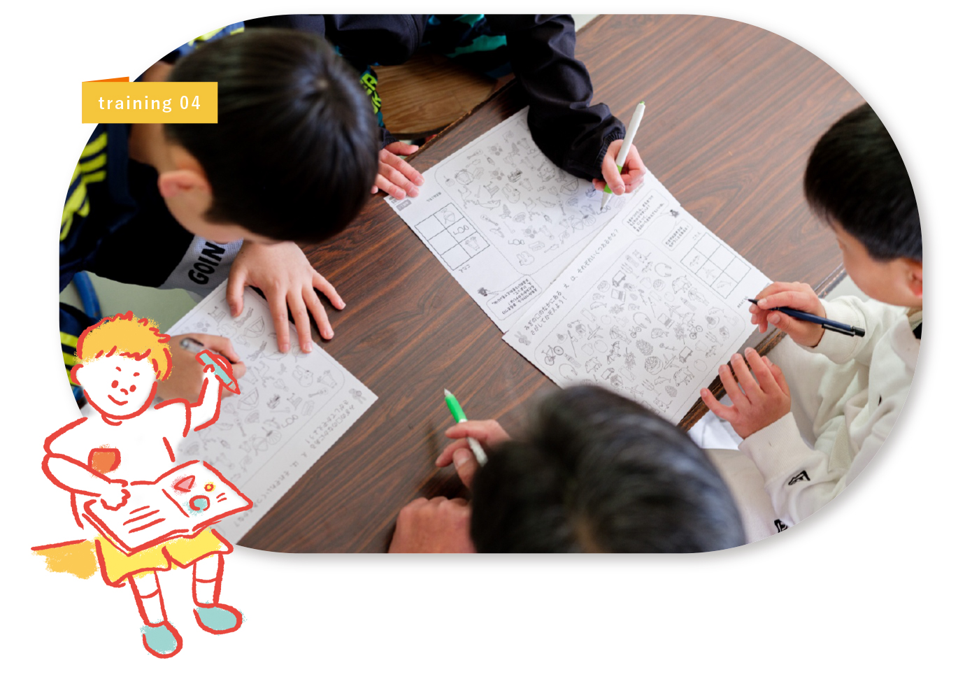 | ① ビジョントレーニング … 視野を広く捉えて、アウトプットする力を発達させます。 |