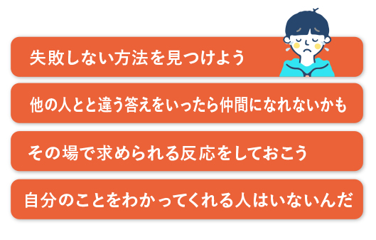 「できない体験」は蓄積され、自己否定へつながってしまうことも。不安が大きくなればなるほど、危険を感じ、警戒し、失敗を予防する負のループに。