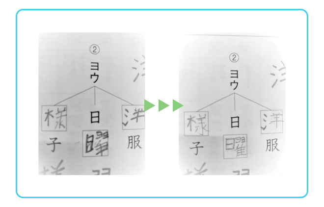 マスの中でバランス良く書けなかった漢字が正確に書けるようになりました。